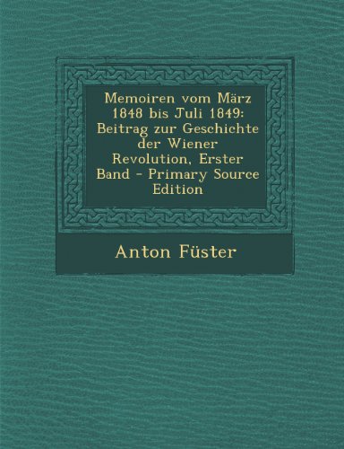 Download Memoiren Vom Marz 1848 Bis Juli 1849: Beitrag Zur Geschichte Der Wiener Revolution, Erster Band PDF